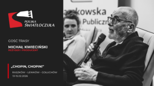 W dniach 13–15 lutego 2026 roku Polska Światłoczuła wyruszyła w swoją pierwszą trasę filmową tego roku, niosąc ze sobą pasję, ciekawość i zachwyt nad sztuką kina. Gościem lutowych projekcji był Michał Kwieciński, reżyser i producent filmu „Chopin, Chopin!”, który spotkał się z publicznością w Raszkowie, Lewkowie i Gołuchowie w województwie Wielkopolskim.